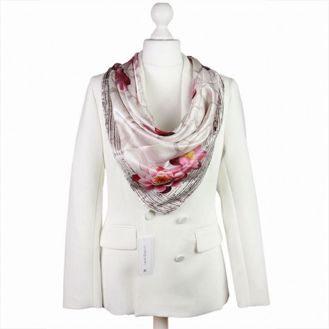Apaszka jedwabna kremowa z kwiatowym wzorem.