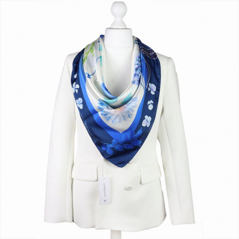 Apaszka jedwabna granatowa damska z kwiatowym wzorem.