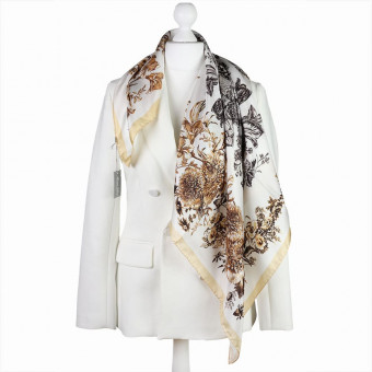 Apaszka jedwabna kwiatowa damska w kolorze sepii.